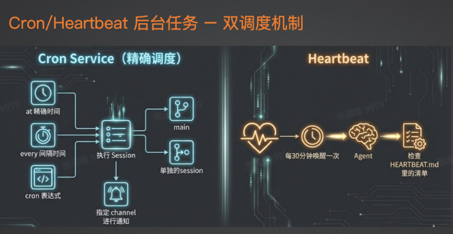 - 后台任务:Cron Tab 或心跳机制